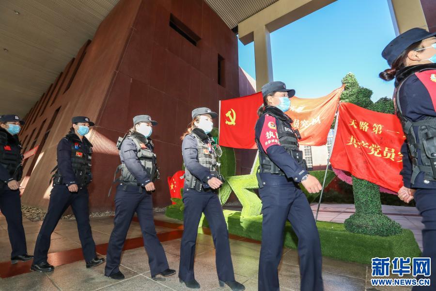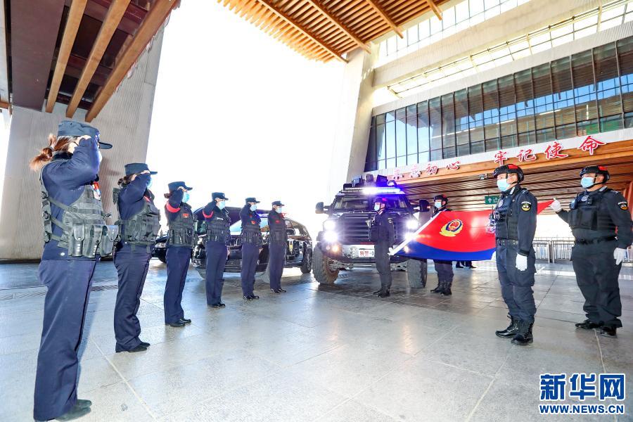 1月10日, 拉薩火車站派出所“女子格桑花”警組佇(zhu) 立在警旗前宣誓。