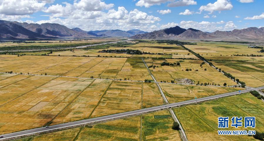 俯瞰西藏日喀則市白朗縣的農(nong) 田(2019年8月31日攝,無人機照片)。新華社記者 晉美多吉 攝