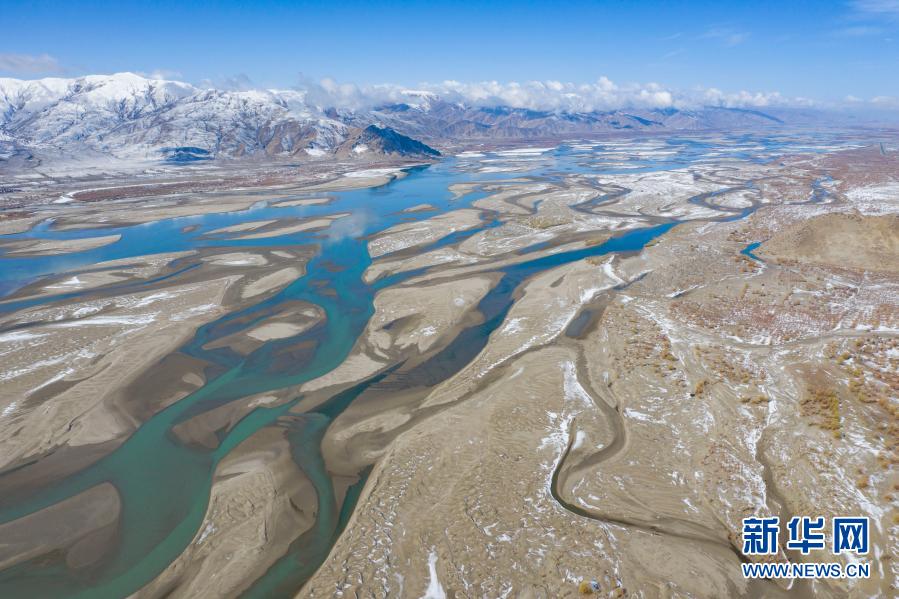 這是2020年3月24日拍攝的雅魯藏布江雪景(無人機照片)。新華社記者 普布紮西 攝