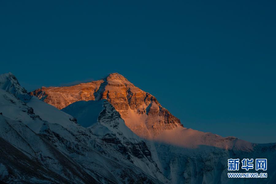 落日餘(yu) 暉灑在珠峰上(2020年4月22日攝)。新華社記者 孫非 攝