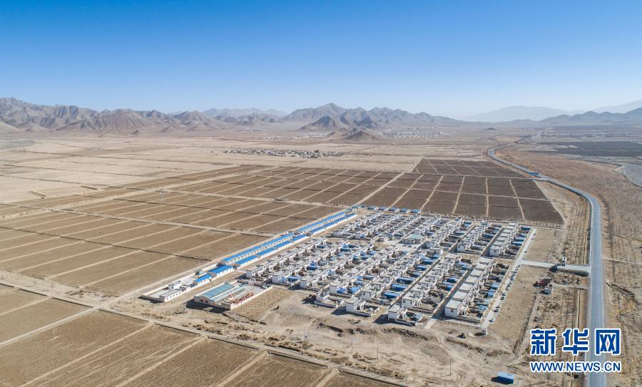 這是1月14日拍攝的西藏日喀則市薩迦縣扯休鄉(xiang) 嘎吉林村安置點(無人機照片)。新華社記者 孫非 攝