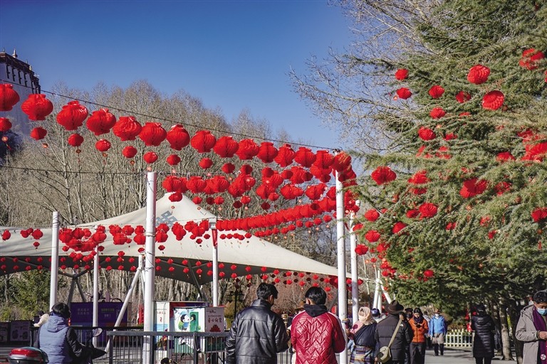 “日喀則新年已經開始,但我因為(wei) 工作原因沒能回去。今天過來公園散步,看到掛著的紅燈籠,一下子就有年味了,感覺公園都變得更漂亮了。”來自日喀則市江孜縣的白瑪央金說。