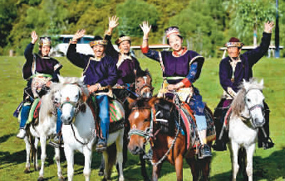 西藏自治區林芝市魯朗旅遊小鎮農(nong) 牧民向遊客招手致意。新華社記者 張汝鋒攝