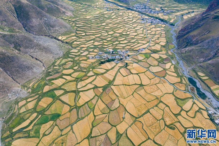位於(yu) 拉薩河穀的青稞田(2020年9月9日攝,無人機照片)。新華社記者 普布紮西 攝