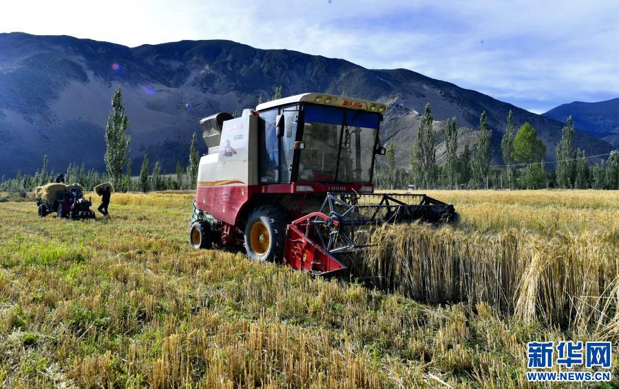 西藏山南市紮囊縣鬆卡居委會(hui) 的居民在收割青稞(2019年8月29日攝)。新華社記者 張汝鋒 攝