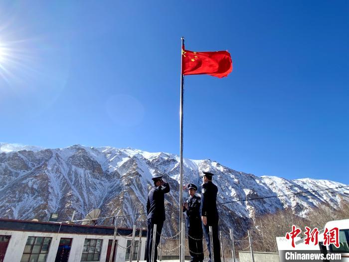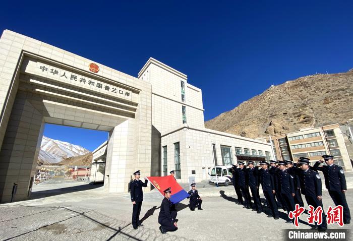 圖為(wei) 普蘭(lan) 邊檢站舉(ju) 行升旗儀(yi) 式。 普蘭(lan) 邊檢站供圖