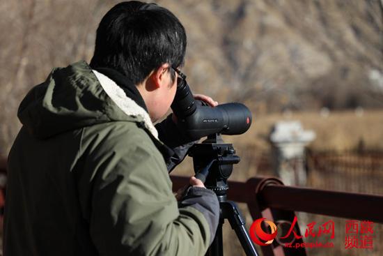 楊樂(le) 在拉魯濕地觀測鳥類情況。 李海霞 攝