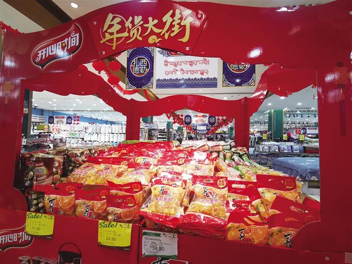 隨後,記者來到娘熱路的哈達購物廣場,超市裏掛起的大紅燈籠和播放的“恭喜發財”、“歡樂(le) 過大年”等音樂(le) ,給商場增添了不少喜慶,而來這裏采購年貨的人也不少!過年備什麽(me) 年貨,吃什麽(me) 好吃的,這是大家最為(wei) 關(guan) 心的事情。記者看到,超市裏堆滿了各種各樣的零食大禮包、糖果、飲料。除了零食糖果,風幹肉、香腸、臘肉等這些過年餐桌上必不可少的年味,早已經放上貨架等待市民選購。