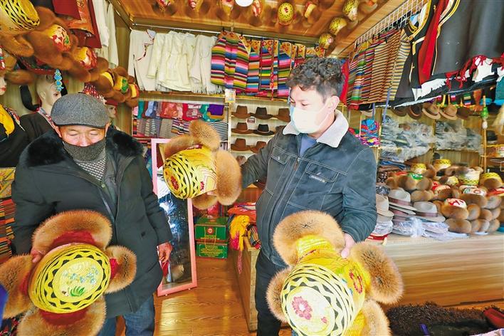 圖為(wei) 正在為(wei) 新年添置新衣(帽)的群眾(zhong) 。記者 巴桑旺姆 攝
