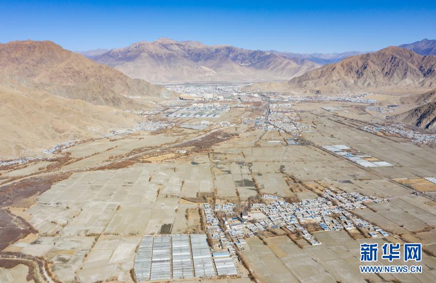 這是西藏山南市乃東(dong) 區克鬆村社區農(nong) 業(ye) 產(chan) 業(ye) 生產(chan) 基地(2月9日攝,無人機照片)。新華社記者 普布紮西 攝