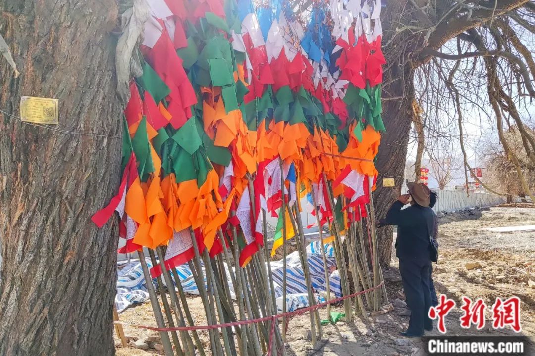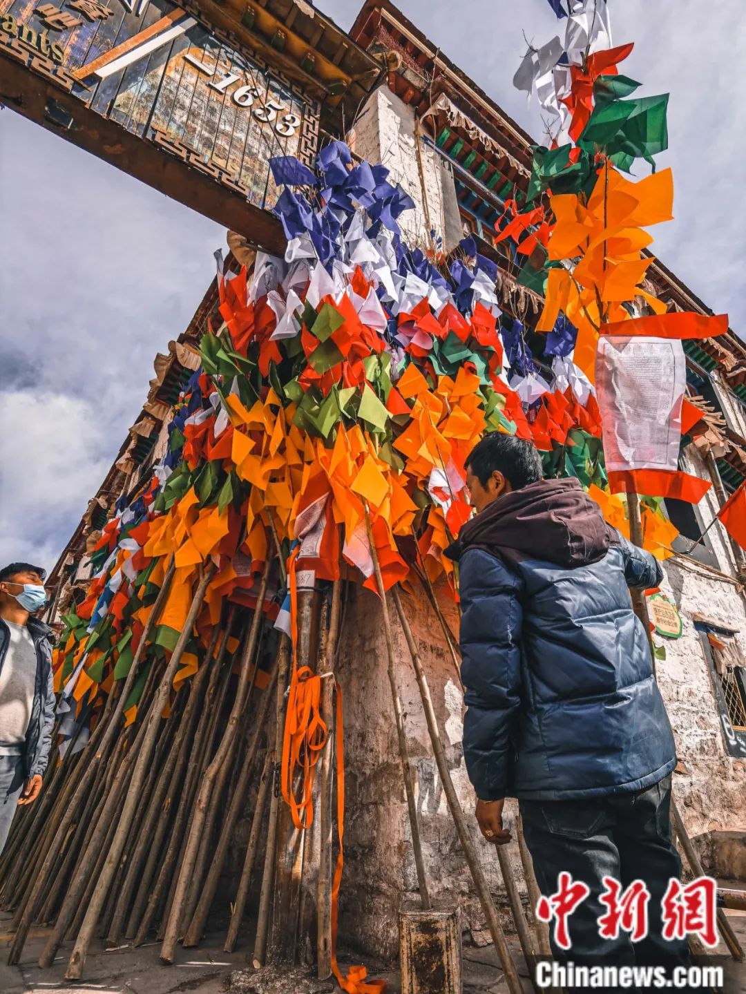 根據傳(chuan) 統,西藏民眾(zhong) 會(hui) 在藏曆新年初三前後將屋頂、山頂、湖邊等地懸掛的五彩經幡進行更換,祈禱新年吉祥如意、五穀豐(feng) 登。