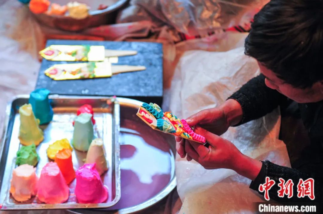 圖為(wei) 手工藝人捏製酥油花。江飛波 攝