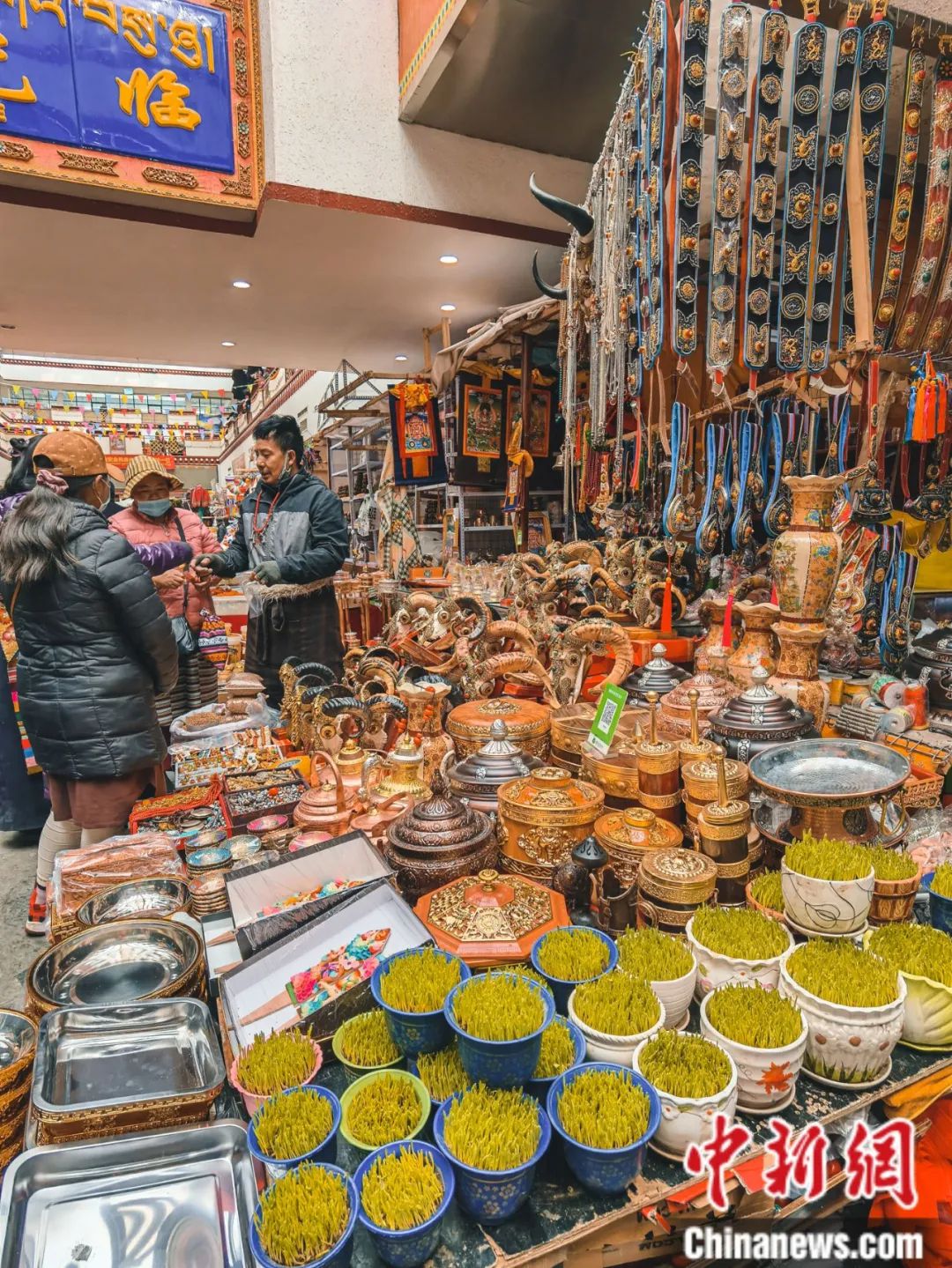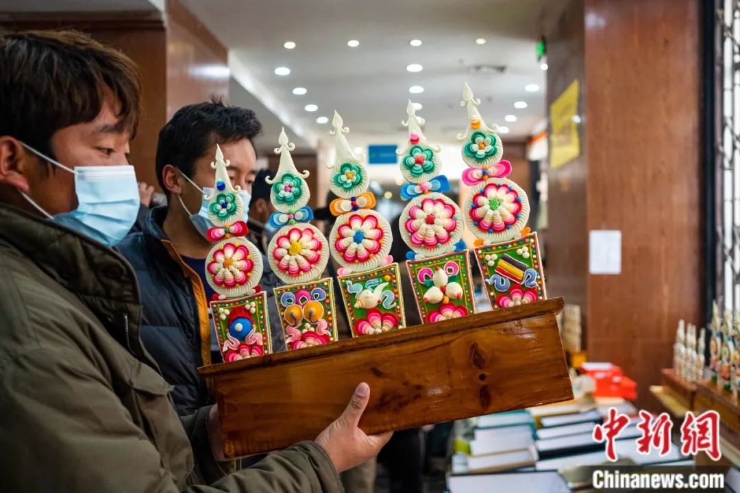 拉薩民眾(zhong) 購買(mai) 酥油花。何蓬磊 攝