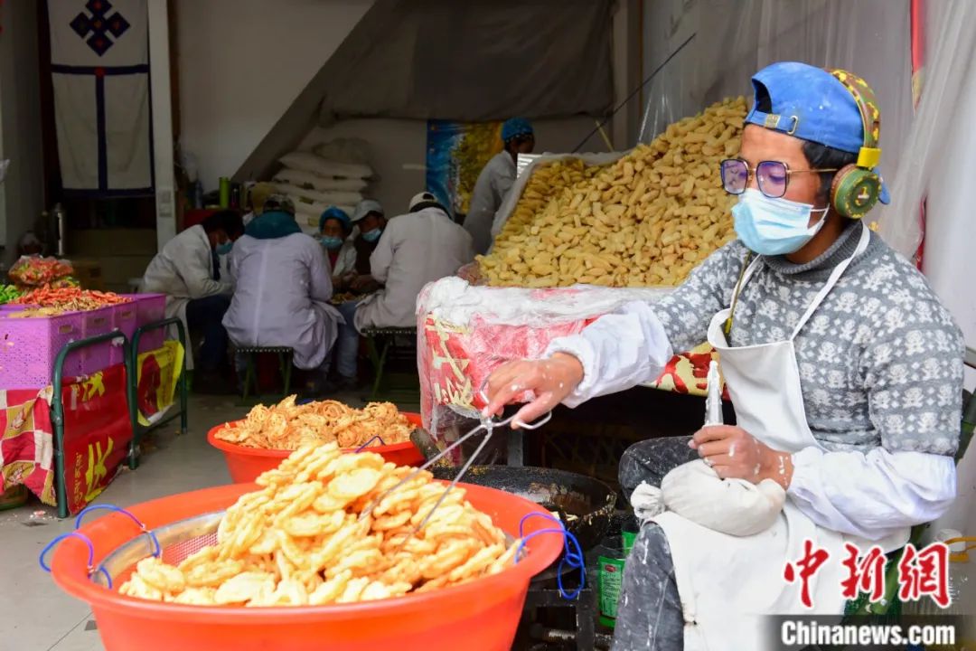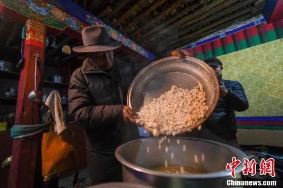 據悉,藏曆新年初一,西藏拉薩民眾(zhong) 也有“拜年”“串門”的習(xi) 慣,家裏的主人端著“切瑪”,拿著青稞酒迎接,客人們(men) 用手指抓一點青稞拋向天空祈福,再抓些糌粑送入口中,隨後開始“三口一杯”的飲酒儀(yi) 式,一聲聲“羅薩紮西德勒”,相互致以新年的問候。