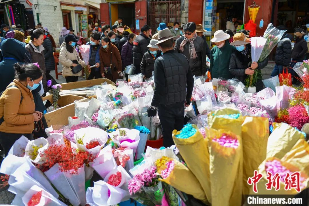 拉薩民眾(zhong) 在年貨市場購買(mai) 鮮花。江飛波 攝