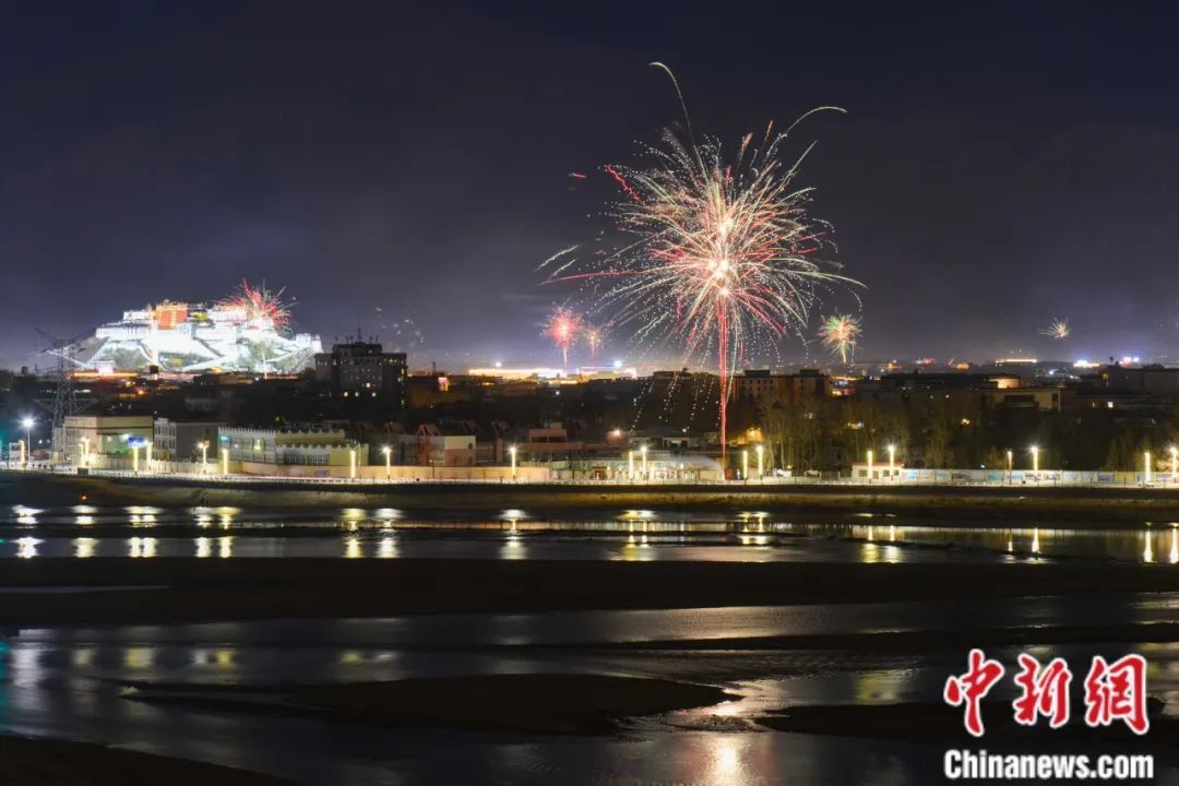 古突夜的煙花與(yu) 布達拉宮。江飛波 攝