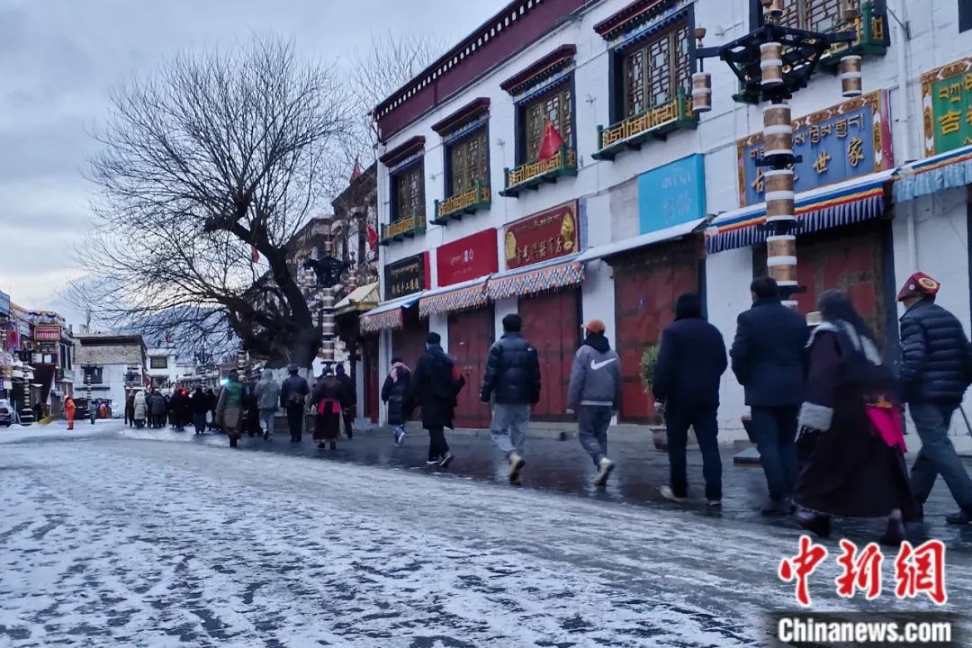 入冬以來,拉薩民眾(zhong) 一直“盼雪”,未曾想在藏曆新年“古突”夜、農(nong) 曆除夕當天迎來降雪,不少市民感慨,此次降雪寓意吉祥,“瑞雪兆豐(feng) 年”。