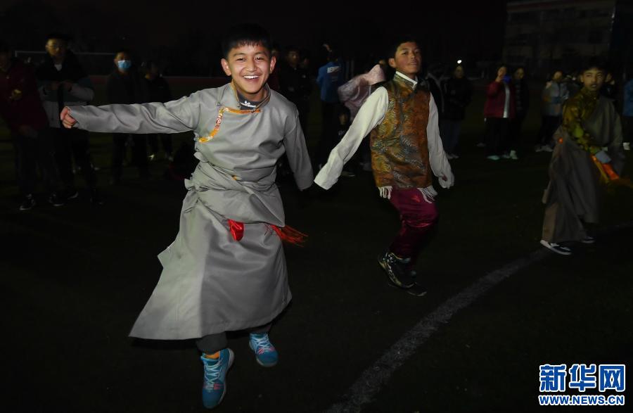 12日晚,夜幕降臨(lin) ,華燈初上。伴隨著歡快的音樂(le) 聲,武漢西藏中學操場上,學生們(men) 變換著各種舞姿歡慶藏曆新年。
