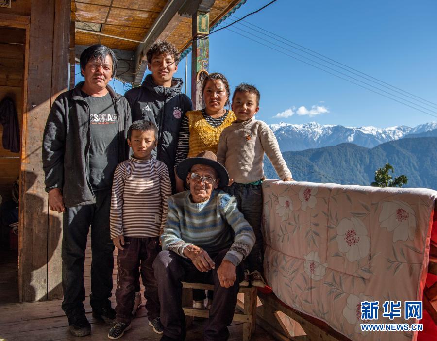 在位於(yu) 西藏林芝市墨脫縣德興(xing) 鄉(xiang) 巴登則村的家中,旺前羅布一家人合影留念(2月9日攝)。新華社記者 孫非 攝