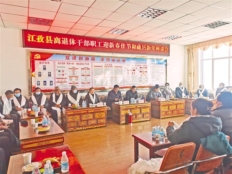 圖為(wei) 江孜縣舉(ju) 辦離退休幹部職工迎新春佳節和藏曆新年座談會(hui) 。紮西頓珠 攝