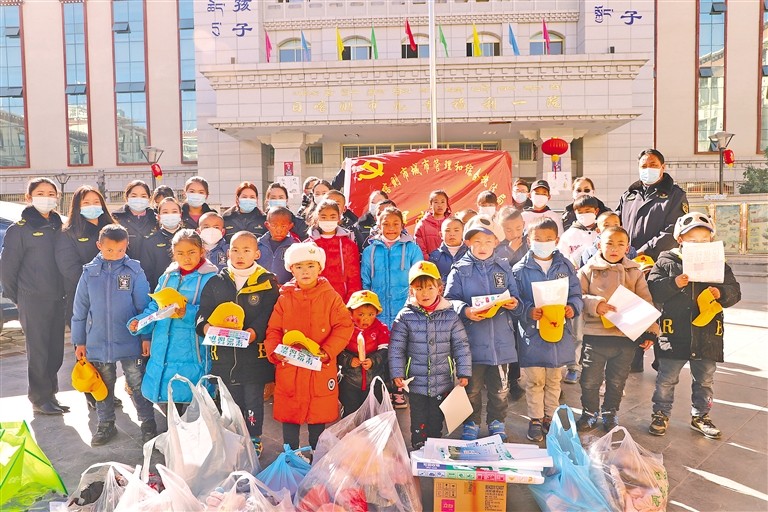 圖為(wei) 日喀則市城市管理局幹部職工前往兒(er) 童福利院開展看望慰問活動後合影留念。紮西頓珠 攝