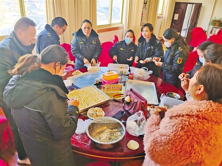 圖為(wei) 日喀則市城市管理局幹部職工圍坐一起包餃子歡度除夕夜。紮西頓珠 攝