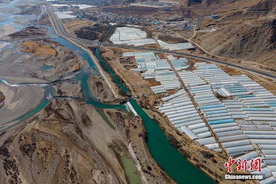 2月26日,航拍西藏拉薩河畔的蔬菜大棚,這些大棚冬季主要種植白菜、蘿卜及大蔥等蔬菜。據悉,目前西藏蔬菜種植麵積已達38.75萬(wan) 畝(mu) ,年產(chan) 量達77.19萬(wan) 噸,夏秋兩(liang) 季主要城鎮蔬菜自給率達八成以上,冬春自給率六成左右。西藏自治區農(nong) 業(ye) 農(nong) 村廳介紹,近年來,隨著蔬菜大棚種植麵積逐步擴大,加上從(cong) 區外調運,西藏民眾(zhong) 餐桌日益豐(feng) 富。中新社記者 江飛波 攝
