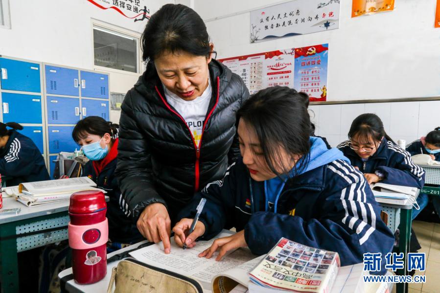 2月19日,班主任武敏指導次仁曲尼學習(xi) 。新華網 發(王浩慶 攝)
