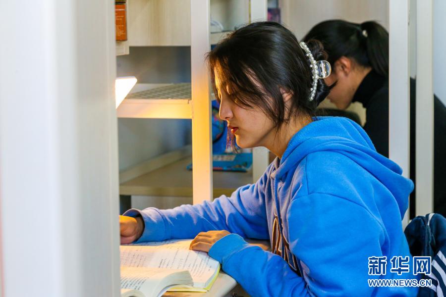 次仁曲尼在寢室學習(xi) 。新華網 發(王浩慶 攝)