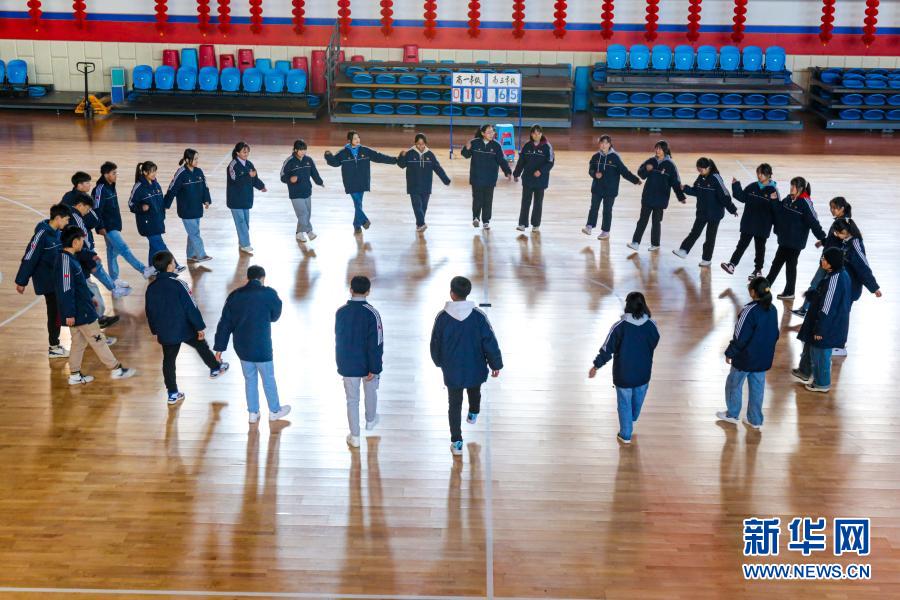 體(ti) 育課上,西藏班學生齊跳鍋莊舞。新華網 發(王浩慶 攝)