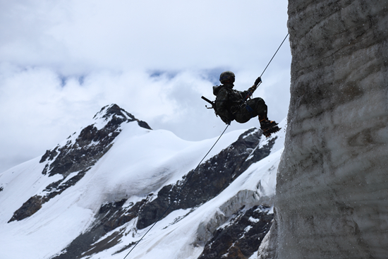“偵(zhen) 察兵是‘雪域鷹眼’,就要‘上天、遁地、下水、入夜’,無所不能,無所不練!”馬乾笑著說,這是自己練兵的“八字真訣”。