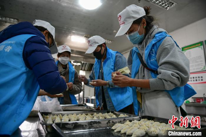 圖為(wei) 青年誌願者在為(wei) 福利院老人包餃子。 貢嘎來鬆 攝