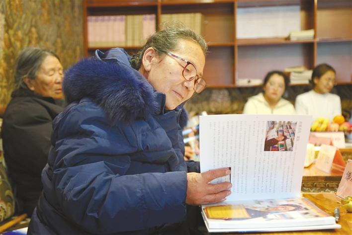 圖為(wei) 昌都市婦聯組織老黨(dang) 員幹部查看“70人70事獻禮畫冊(ce) ”。