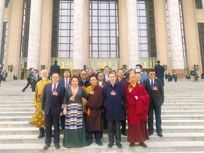圖為(wei) 3月10日下午,全國政協十三屆四次會(hui) 議閉幕。圖為(wei) 住藏全國政協委員在會(hui) 場外合影。旦增赤列 攝