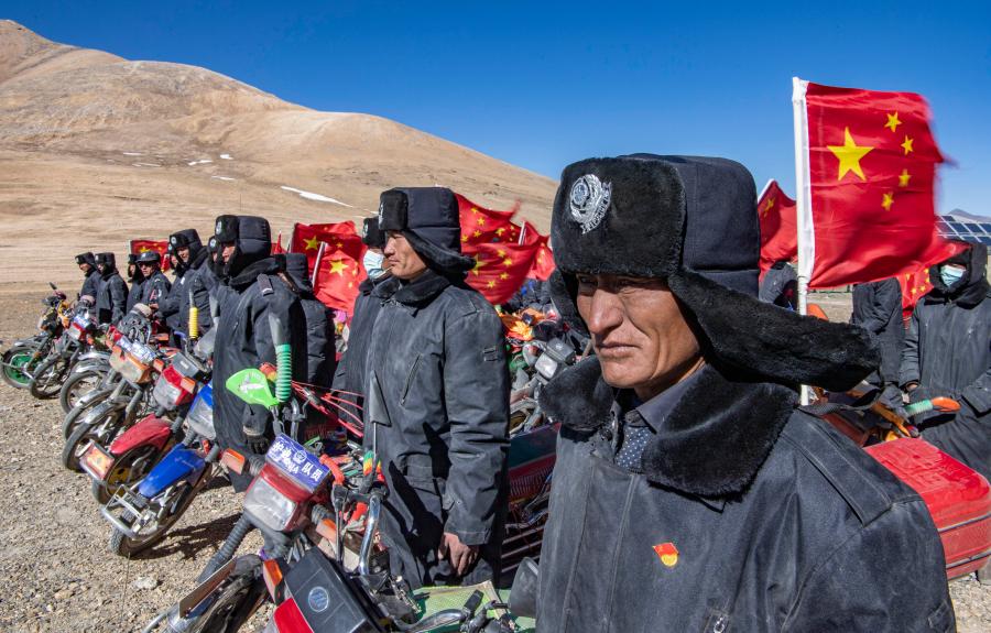 “巡邏隊負責協助派出所巡邏,重點防範非法出入境人員從(cong) 各山口偷渡。”薩嘎邊境管理大隊教導員王卿龍介紹,由於(yu) 邊境地區麵積廣大,隊裏便發動普通群眾(zhong) ,共同守衛邊境安全。