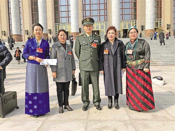 圖為(wei) 住藏全國政協委員在會(hui) 場外合影。記者 李洲 特約記者 旦增赤列 攝
