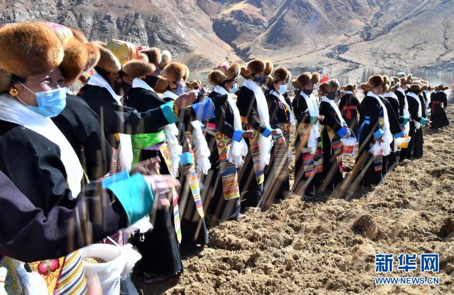 當日,位於(yu) 雅魯藏布江中遊的西藏拉薩市、日喀則市、山南市等地農(nong) 村啟動春耕春播,播撒春天的第一粒種子。各地農(nong) 村按著傳(chuan) 統方式,穿著盛裝,端著青稞酒,在田間地頭舉(ju) 行開春儀(yi) 式。