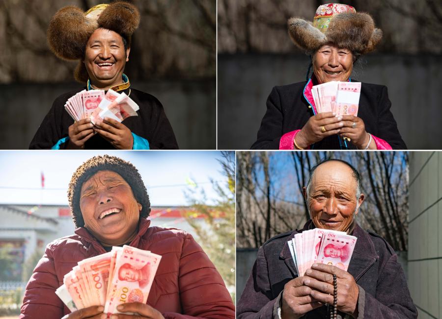 2月9日,領到分紅的克鬆社區居民興(xing) 高采烈。(新華社記者普布紮西攝)