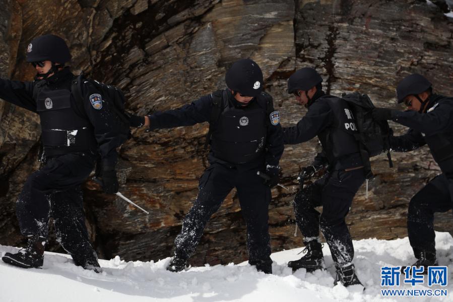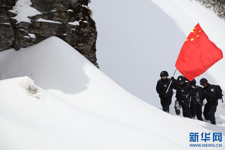 楊帆等5位警察正在乃堆拉巡邏(2021年3月19日攝) 新華社發 張雨強攝
