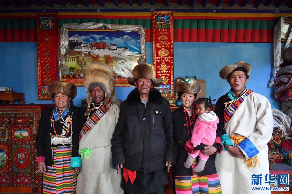 巴桑(左三)和家人合影(3月21日攝)。新華社記者 張汝鋒 攝