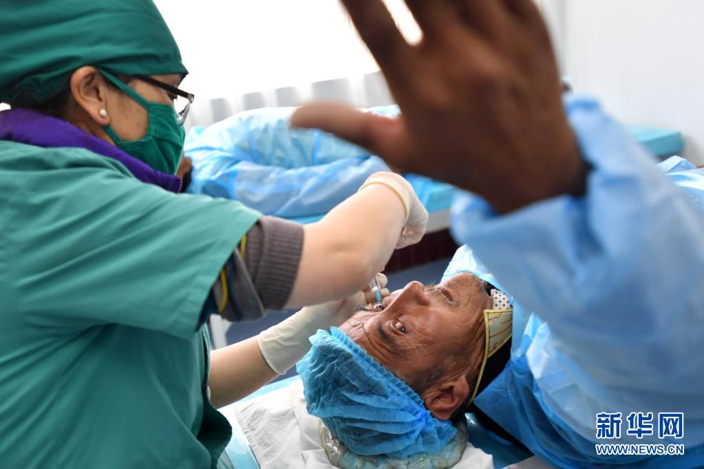 3月25日,78歲的白內(nei) 障患者斯多通過手術重見光明。新華社記者 覺果 攝