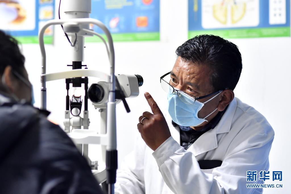 3月24日,西藏拉薩光明眼科康複診療院醫生對白內(nei) 障患者進行檢查。新華社記者 覺果 攝