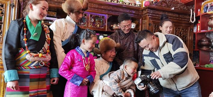 全家福,方寸之間承載著情感和牽掛,也定格著每個(ge) 家庭團圓的幸福瞬間。然而在工作中,索朗多傑慢慢發現很多村民家庭都沒有全家福,這導致隨著時間的流逝,很多幸福的瞬間被慢慢遺忘。於(yu) 是2012年2月,在拉薩市文聯的支持下,索朗多傑和幾名同事組成拍攝小組,利用閑暇時間給村民家庭免費拍攝全家福。這件事,他們(men) 一做就是10年。