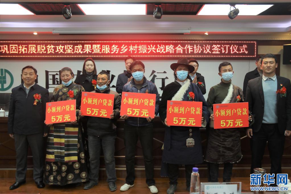 當天,當雄縣扶貧辦與(yu) 農(nong) 行當雄縣支行簽訂了財政風險補償(chang) 基金擔保農(nong) 牧戶小額扶貧貸款合作協議,並根據農(nong) 戶信用條件、還款能力及資金需求,試點推出單筆金額50萬(wan) 元的惠農(nong) e貸,這是農(nong) 行西藏分行首批單筆金額50萬(wan) 元的惠農(nong) e貸,極大滿足了農(nong) 牧民的大額資金需求。