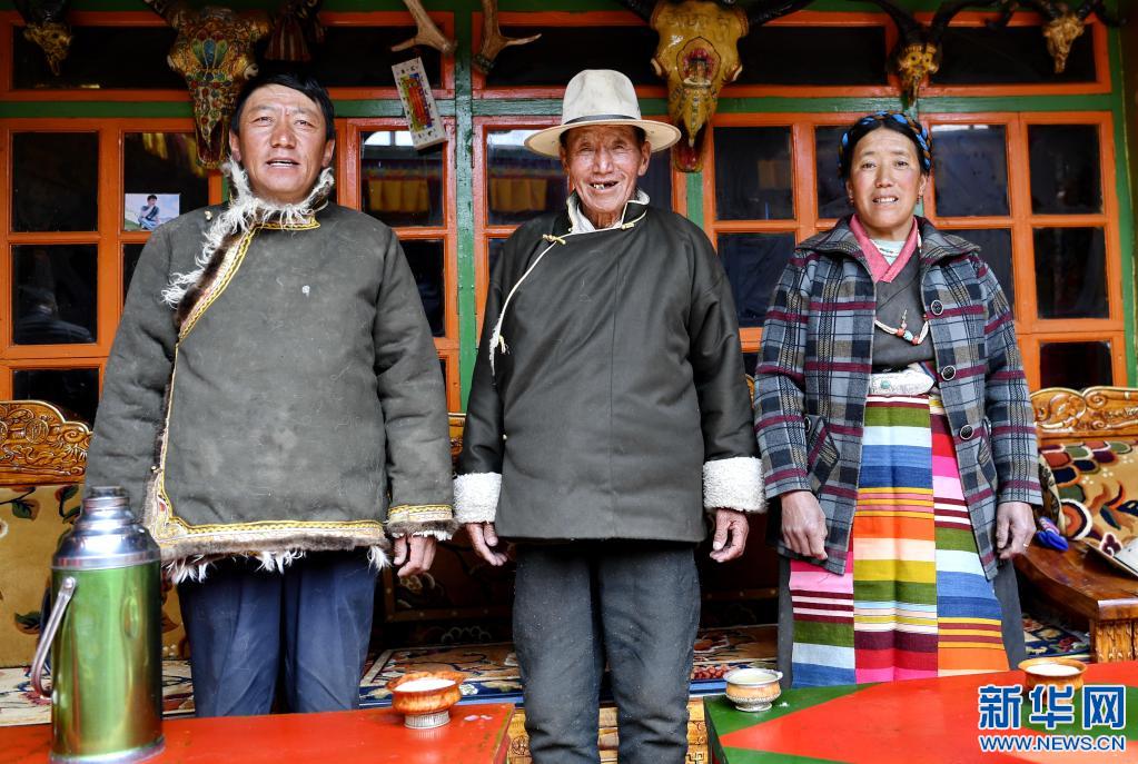 多紮木(中)和兒(er) 子、兒(er) 媳在家中(3月20日攝)。新華社記者 張汝鋒 攝