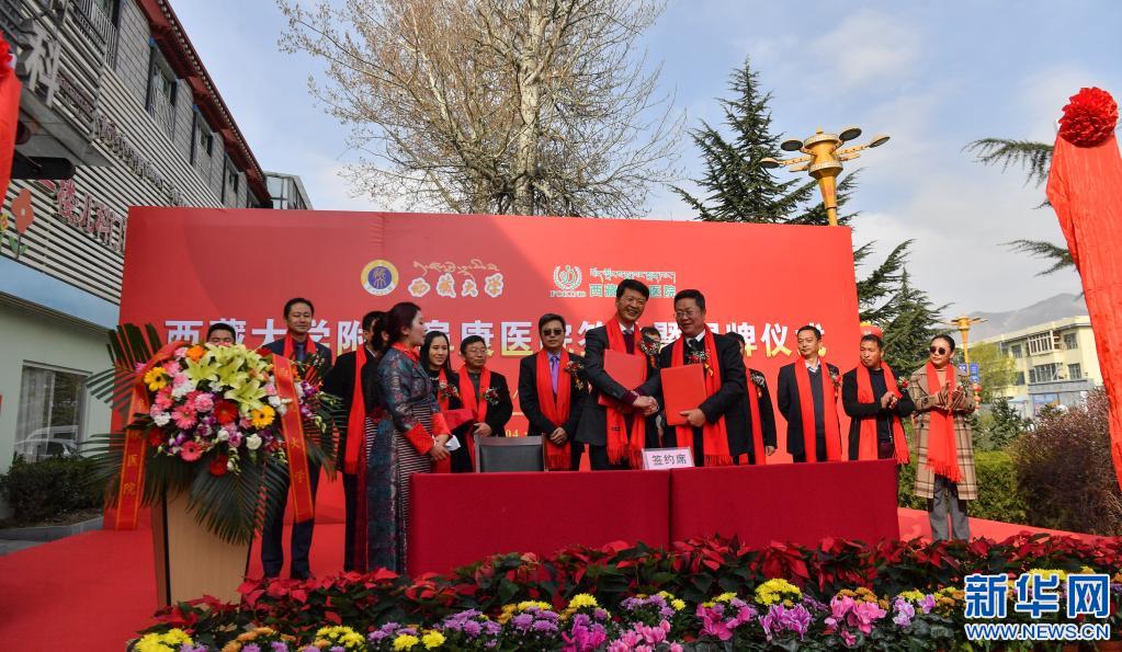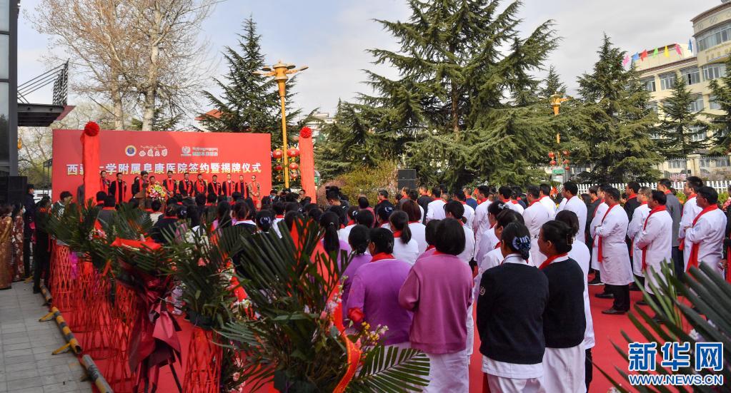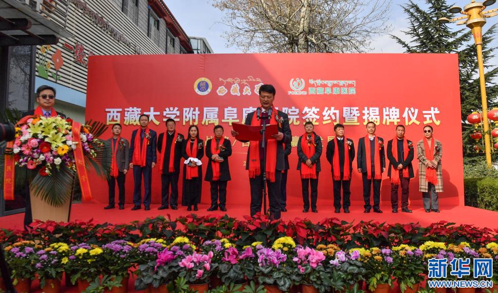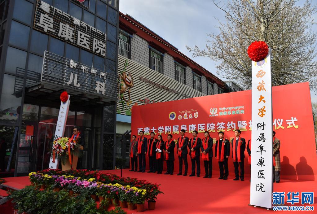 西藏大學附屬阜康醫院簽約暨揭牌儀(yi) 式現場(4月7日攝)。