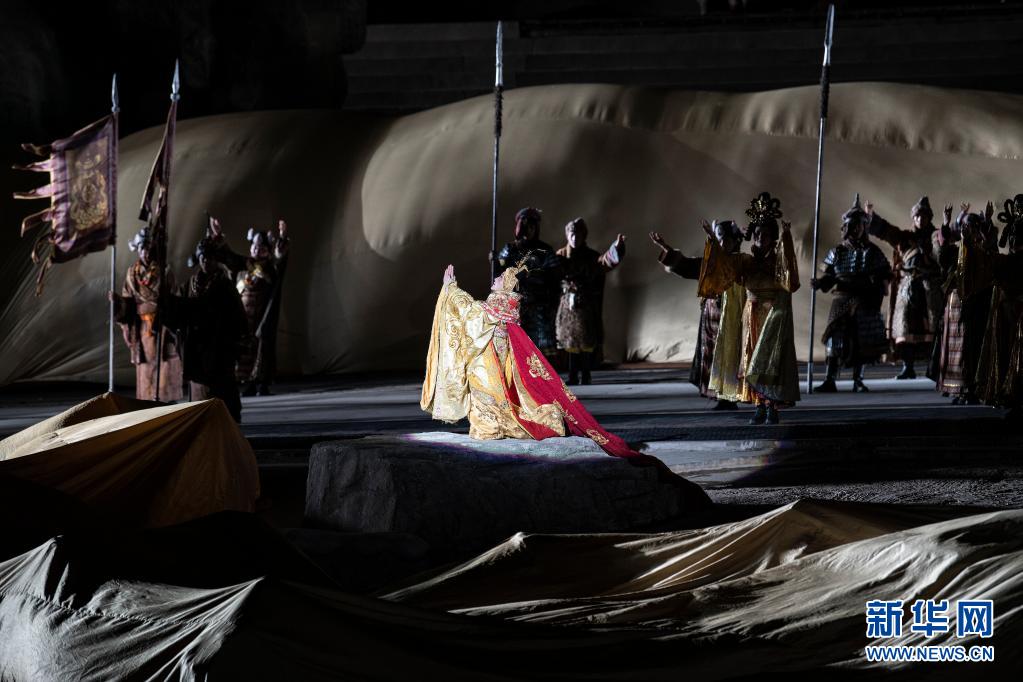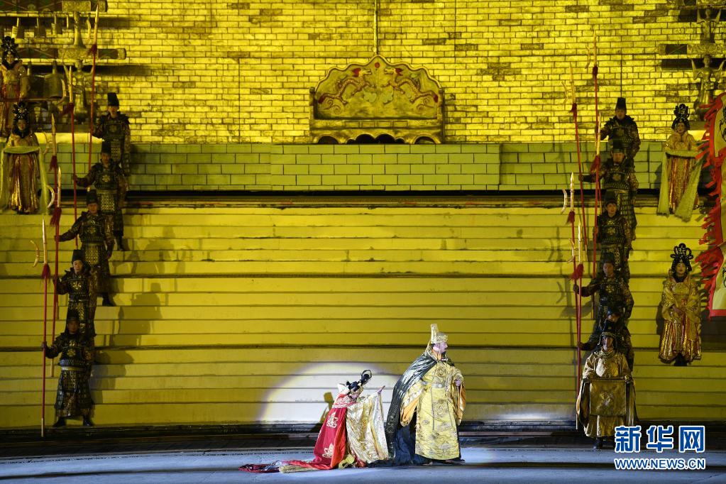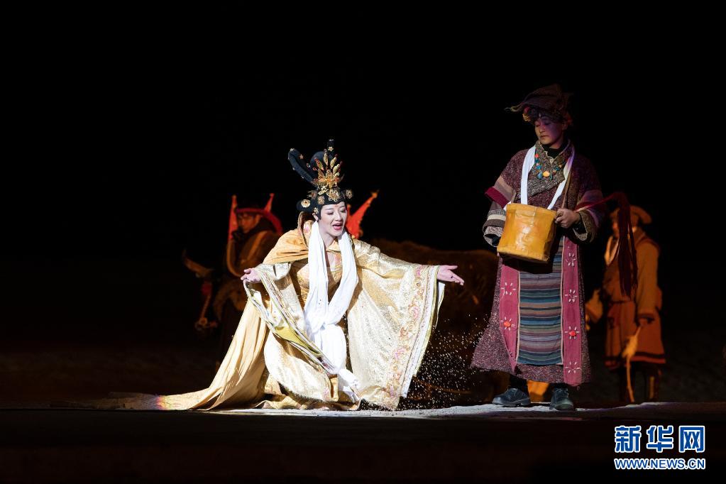 4月10日,演員在大型實景劇《文成公主》中表演。新華社 孫瑞博 攝