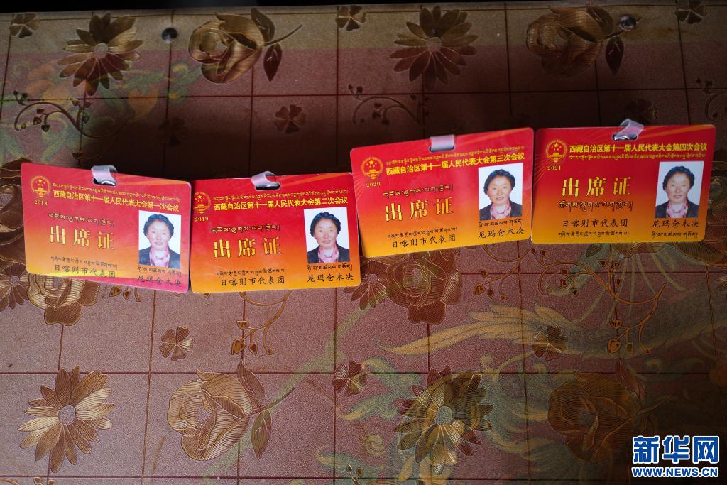 這是尼瑪倉(cang) 木決(jue) 的人大代表出席證(3月20日攝)。新華社記者 孫瑞博 攝