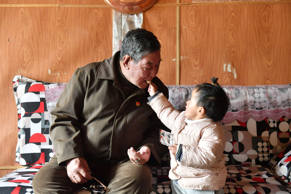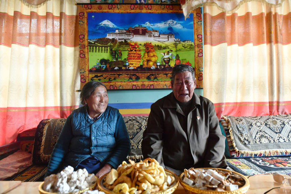 索朗楊佩(右)和老伴兒(er) 卓嘎在位於(yu) 米林縣單嘎努覺村的家中留影(3月30日攝)。