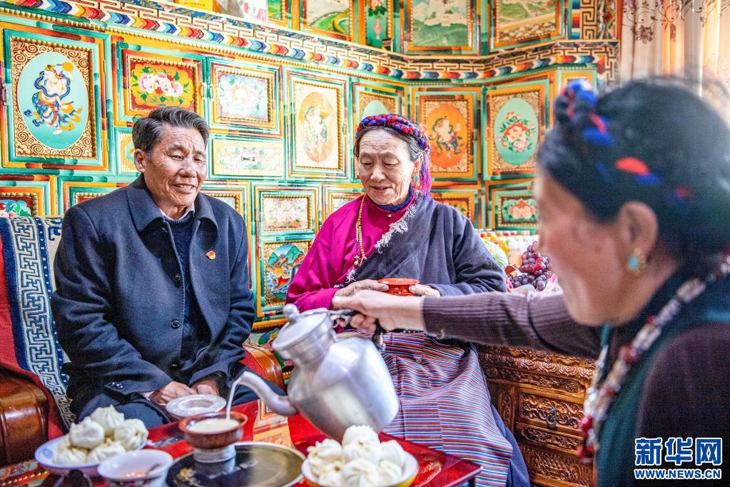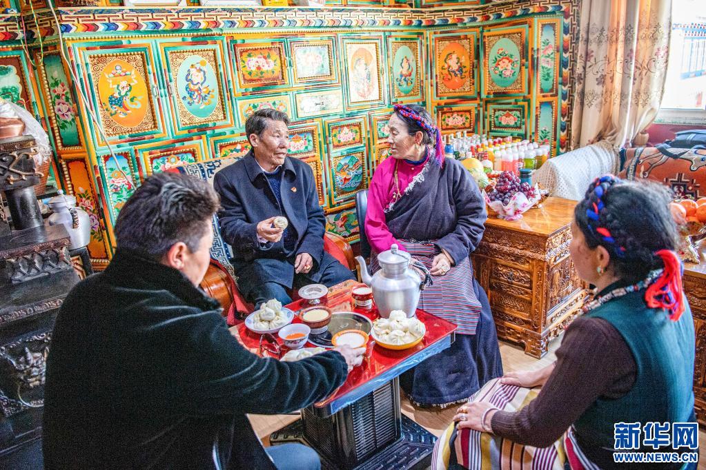 洛鬆朗加(左)和家人一起吃飯(2月19日攝)。新華社記者 孫非 攝